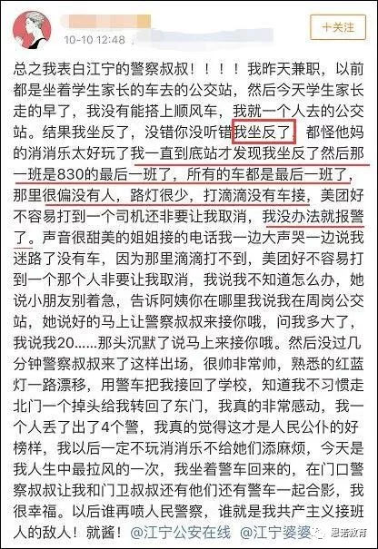 看來這個(gè)女生還挺自知,知道說自己“我好大了”。這個(gè)報(bào)導(dǎo)一出,也惹了很多爭議,有網(wǎng)友說,這是浪費(fèi)公共警務(wù)資源。也有網(wǎng)友說,該女生所在的區(qū)域本來就屬農(nóng)村,很難打到車,錯(cuò)過了最后一班公交,根本無法回去。但在小編看來,這是家庭教育缺失的嚴(yán)重表現(xiàn)。