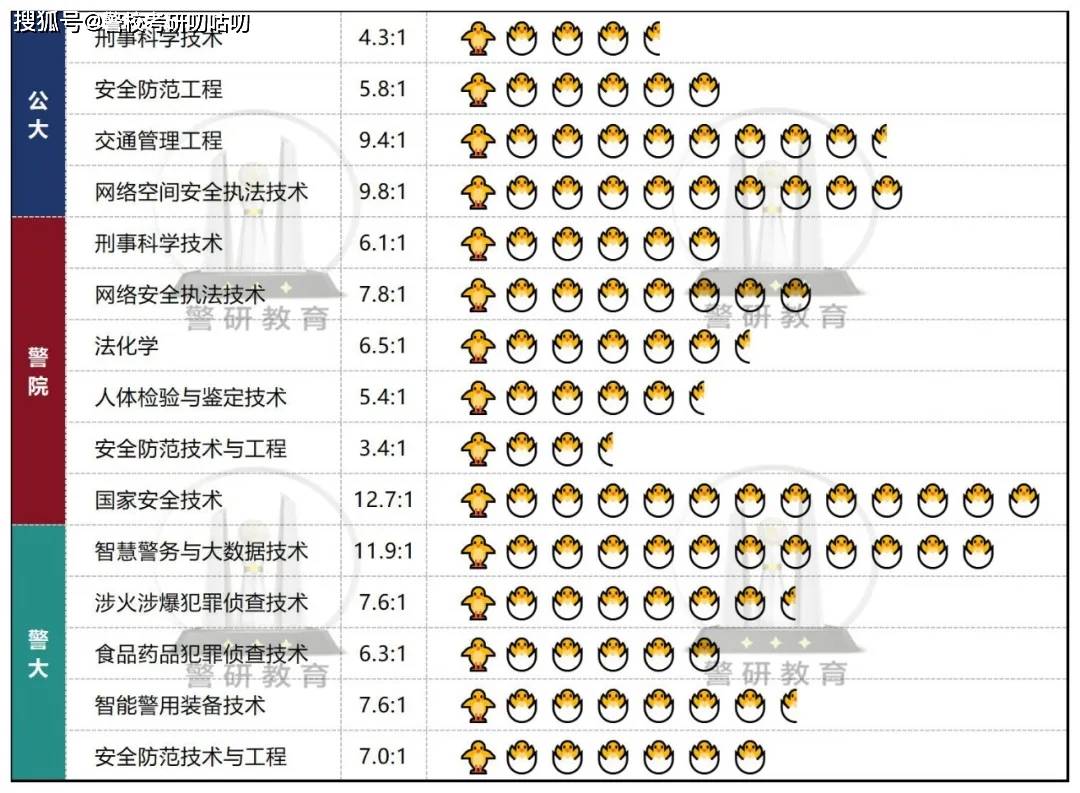其中,公大刑技、警院安防2024年的報錄比,相對可觀;而警院的國技和警大的數據,則人氣非常突出。
