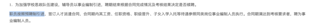 2022年11月,華中科技大學網站發布了《2023年度公開招聘輔導員、職員啟事》,招錄45名輔導員和14名職員,并明確表示,為加強學校思政隊伍建設,輔導員以事業編制引進;職員按照預聘制引進,合同期滿達到考核要求者,聘為事業編制人員。