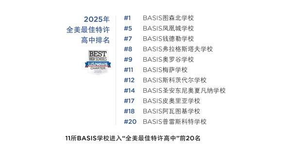 摘要: 在《美國新聞與世界報道》(U.S.NewsWorldReport)最新發(fā)布的2025全美最佳高中排名中,BASIS學校再度憑借卓越表現(xiàn)穩(wěn)居榜首。繼2024年BASIS皮奧里亞學校(BASISPeoria